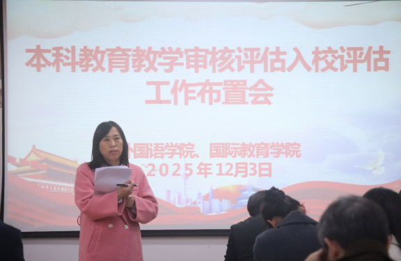 为全面落实本科教育教学审核评估工作要求,扎实推进入校评估各项准备工作,确保评估工作平稳有序,我院于12月3日在外语楼205召开本科教育教学审核评估入校评估工作布置会。会议由副院长李艳飞主持,全体教职工共同参会。