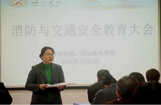 为强化师生安全意识、筑牢校园安全防线,2025年12月3日,外国语学院、国际教育学院组织召开消防与交通安全教育大会,学院党委副书记周茜担任主讲,全体教职工共同参会。