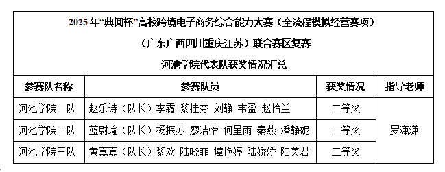 近日,2025年“典阅杯”高校跨境电子商务综合能力大赛(全流程模拟经营赛项•广东广西四川重庆江苏)联合赛区复赛圆满落幕。由我校外国语学院商务英语专业学生组成的三支参赛队伍斩获三项团体二等奖,其中两队晋级全国总决赛。